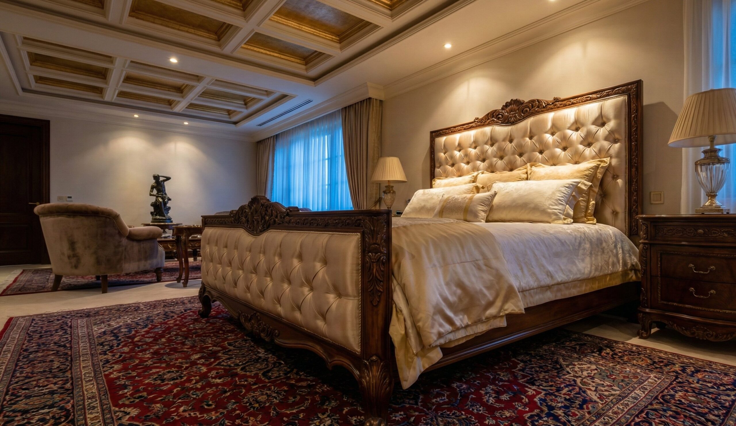 Most of the furniture and decorations are custom-made, featuring the most prestigious designs, extra-large sizes, and premium-quality materials, as well as meticulous attention to every design detail.